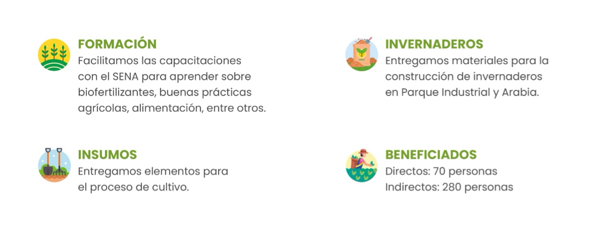 Trabajamos en alianza con el SENA, impactando cuatro comunidades en Arabia, Tribunas, Mundo Nuevo y Parque Industrial en Pereira, Risaralda.